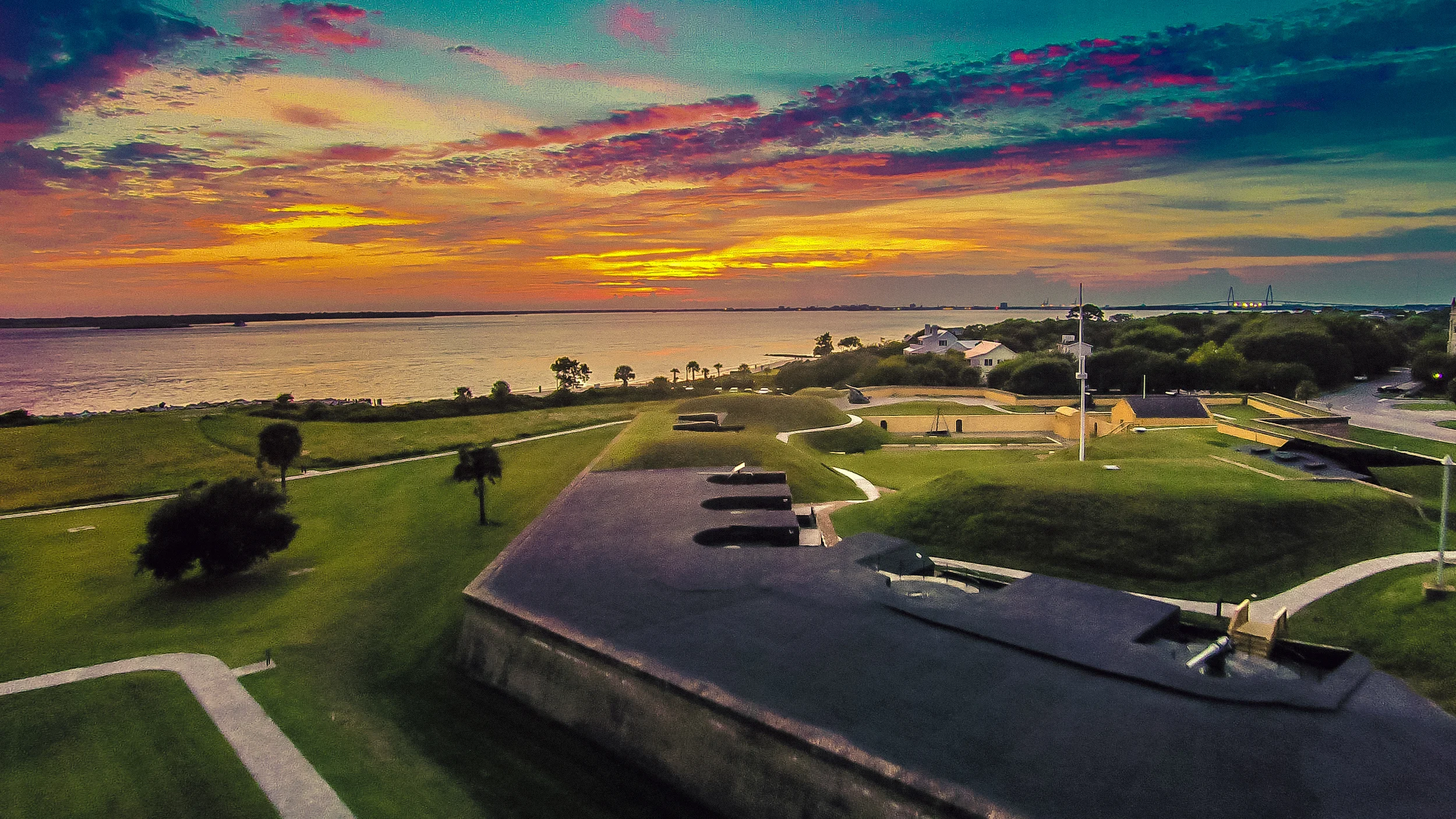 Sullivans Island and Charleston harbor are so peaceful it's hard to imagine the first shots of the Civil War were fired right here when a shell fired from a 10-inch mortar burst just 100 feet above Fort Sumter, seen on the left of the horizon in this photograph.