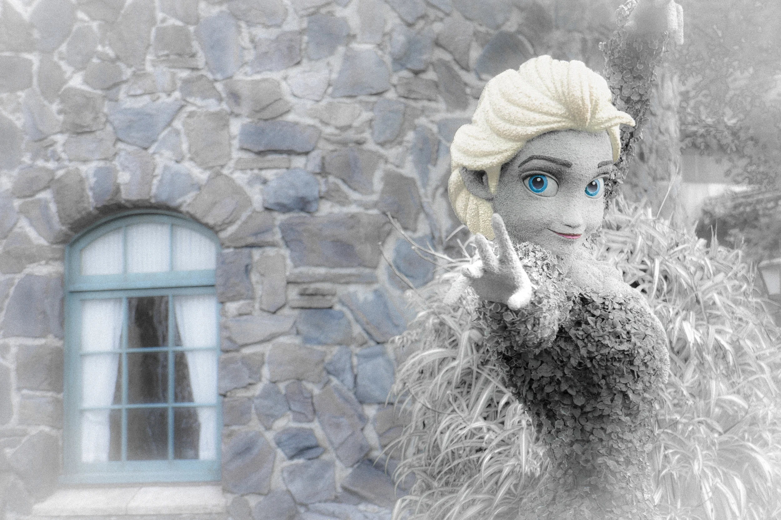 In a nod to the rich history of Disney topiaries and the future of the Norway Pavilion at Epcot, Anna and Elsa currently pose in front of the Akershus Royal Banquet Hall. While they're very well executed, they almost seem too well done to me. As a kid, I remember seeing boxwoods transformed into Mickey and Goofy. There wasn't a lot of detail, but you knew that a skilled arborist spent a lot of time turning those bushes into Disney character replicas. Clearly, the Disney Imagineers have taken topiaries to an entirely new level with these characters!
