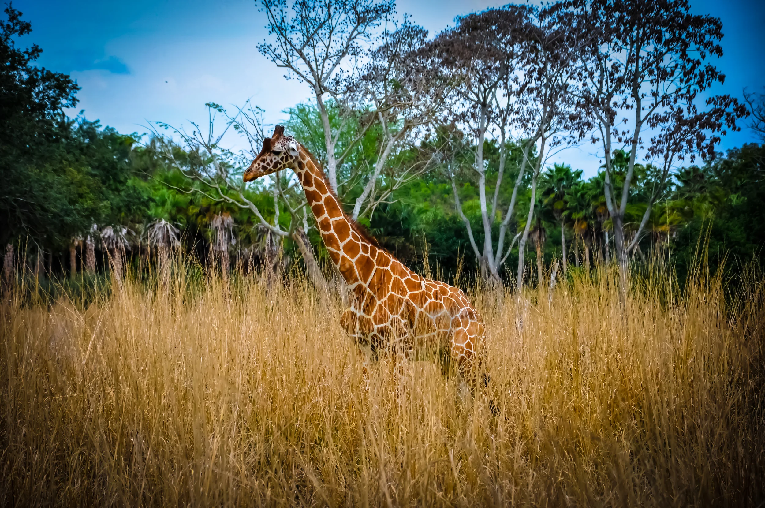 This is a reticulated giraffe, also known as a Somali giraffe. It is native to Somalia and parts of Ethiopia and Kenya. It can also be found living on the "African savanna" at Disney's Animal Kingdom. The Wildlife adventure at Disney's Animal Kingdom really is fantastic. It's sort of like Wall-E meets a traditional zoo as they drive you around in an expedition vehicle through a recreation of various African habitats. Despite clever — and often natural — fence-like dividers between each group of animals, you still feel more like you are in a cage and the animals are out in the wild as you lumber through.