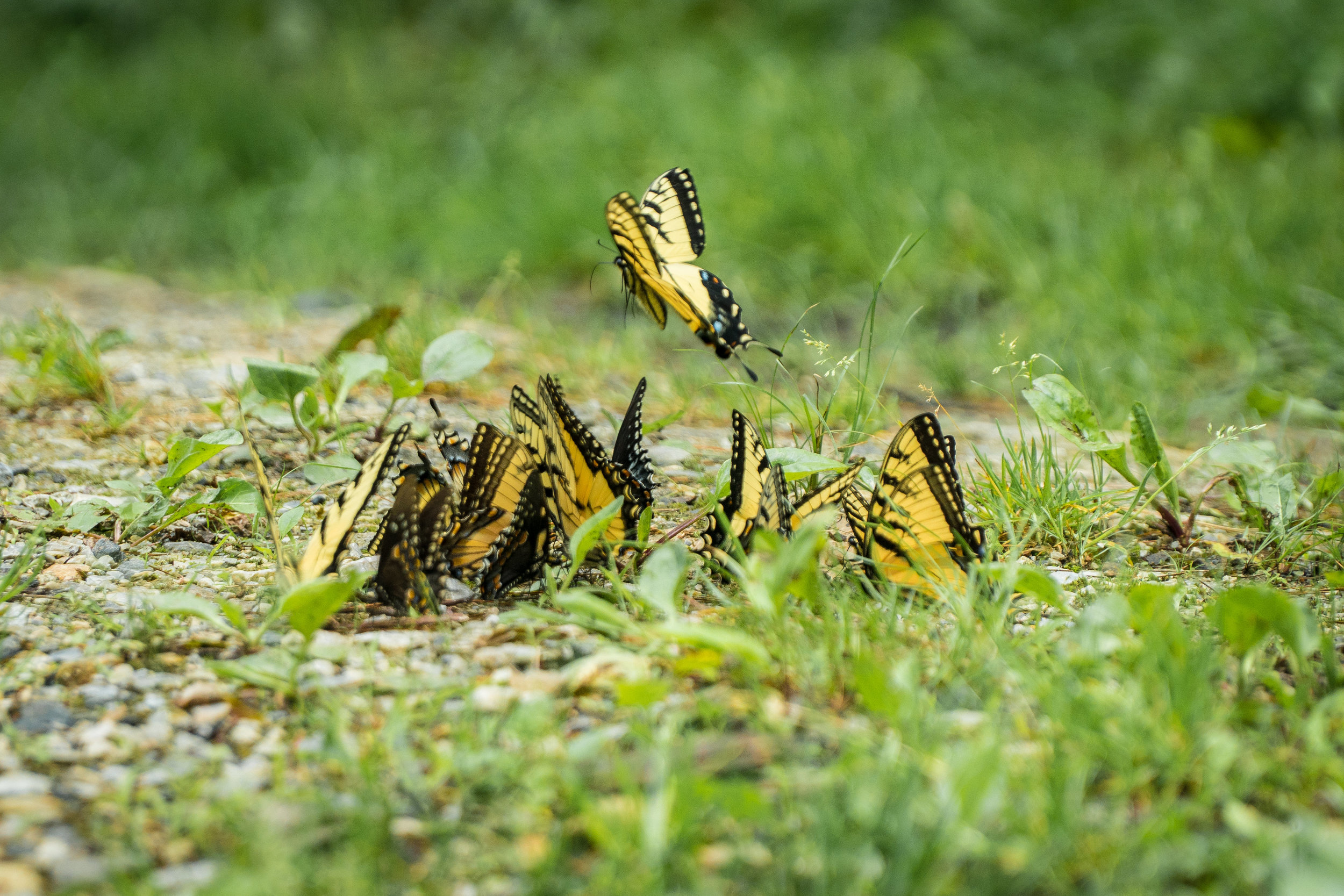 We went hiking in the NC mountains this weekend and found a fork in the trail. Channeling our inner Yogi Berra, we took it. We ended up on a narrow, overgrown path that led straight up the mountain. It opened into an old service road, which we took back to the trailhead. Along the way, our four year-old was convinced she had discovered "Butterfly World" and I think she might be right. Dozens of butterflies were on the trail and at least one was always at our side along the entire walk.