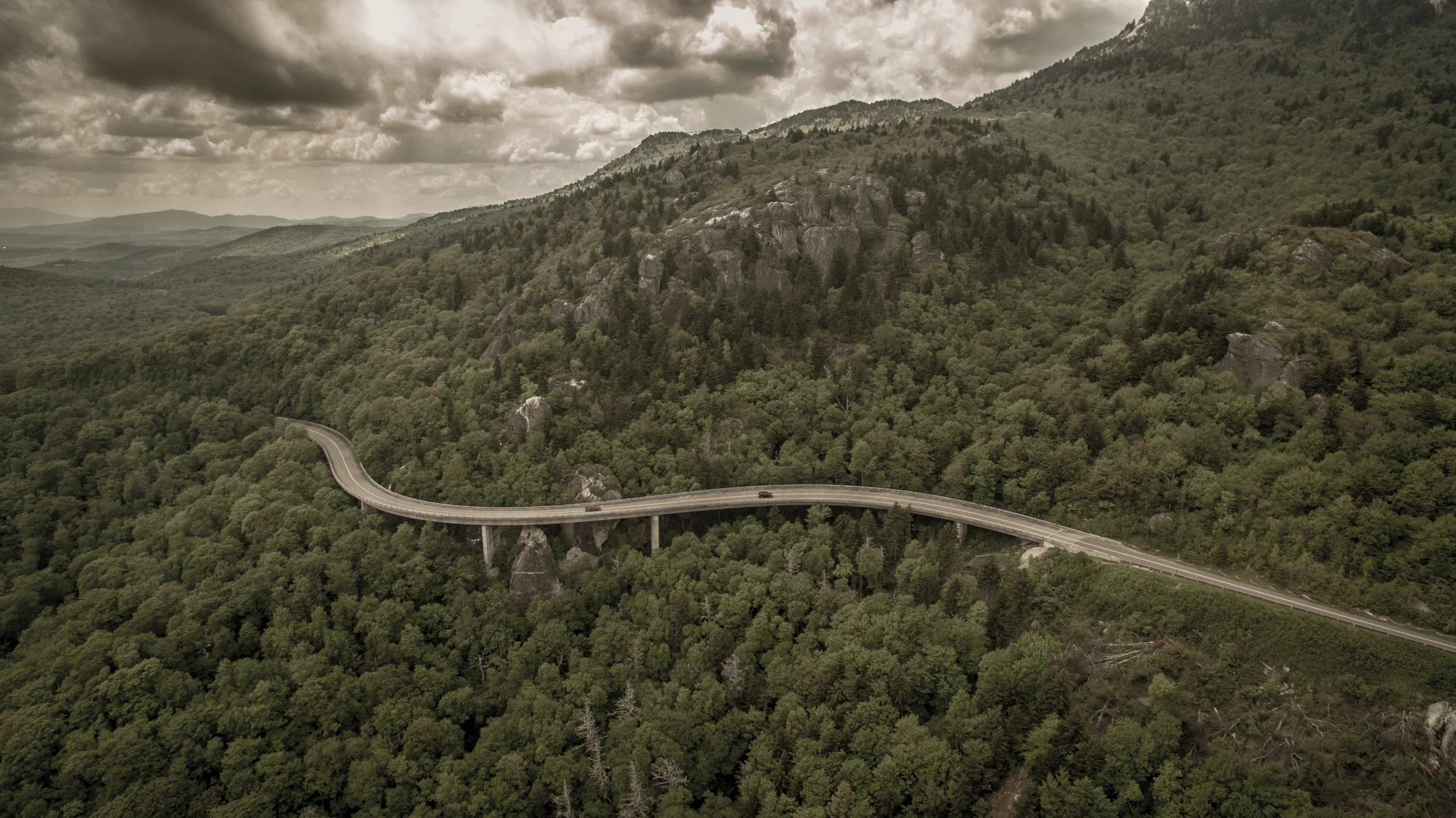 This is the Linn Cove Viaduct on the Blue Ridge Parkway in North Carolina. It's truly a structural engineering masterpiece. It's completion in the 1980s marked the official completion of the Blue Ridge Parkway, joining the north portion and the south portion of the Parkway.