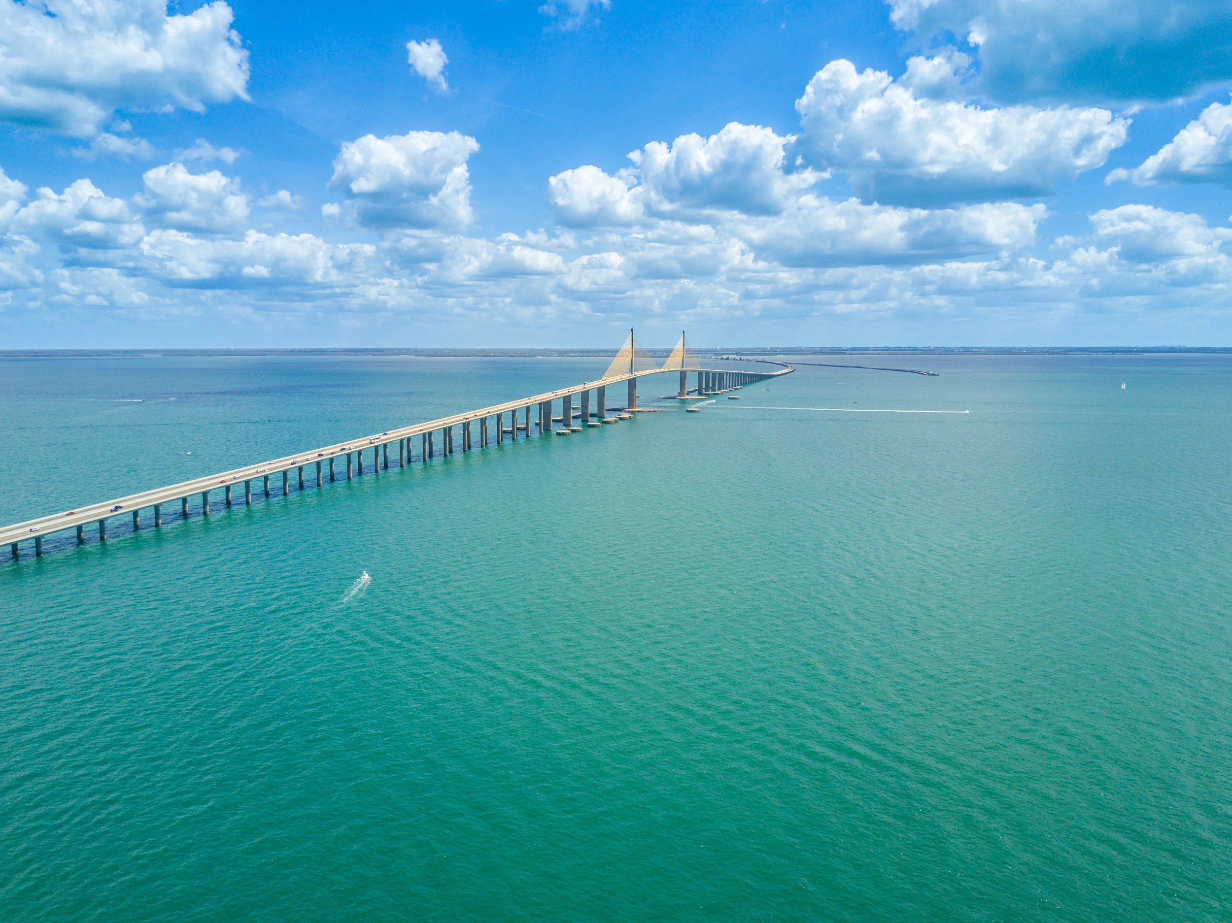 The span portion of the bridge is just over a mile long but with three miles of connector on each side, it's a drive that should be on everyone's road trip bucket list. The connectors seem to float just above the green and blue water of Tampa Bay on one side and the Gulf of Mexico on the other. The close proximity to the water and wide-open views on each side make it a popular stretch of road for car commercials.