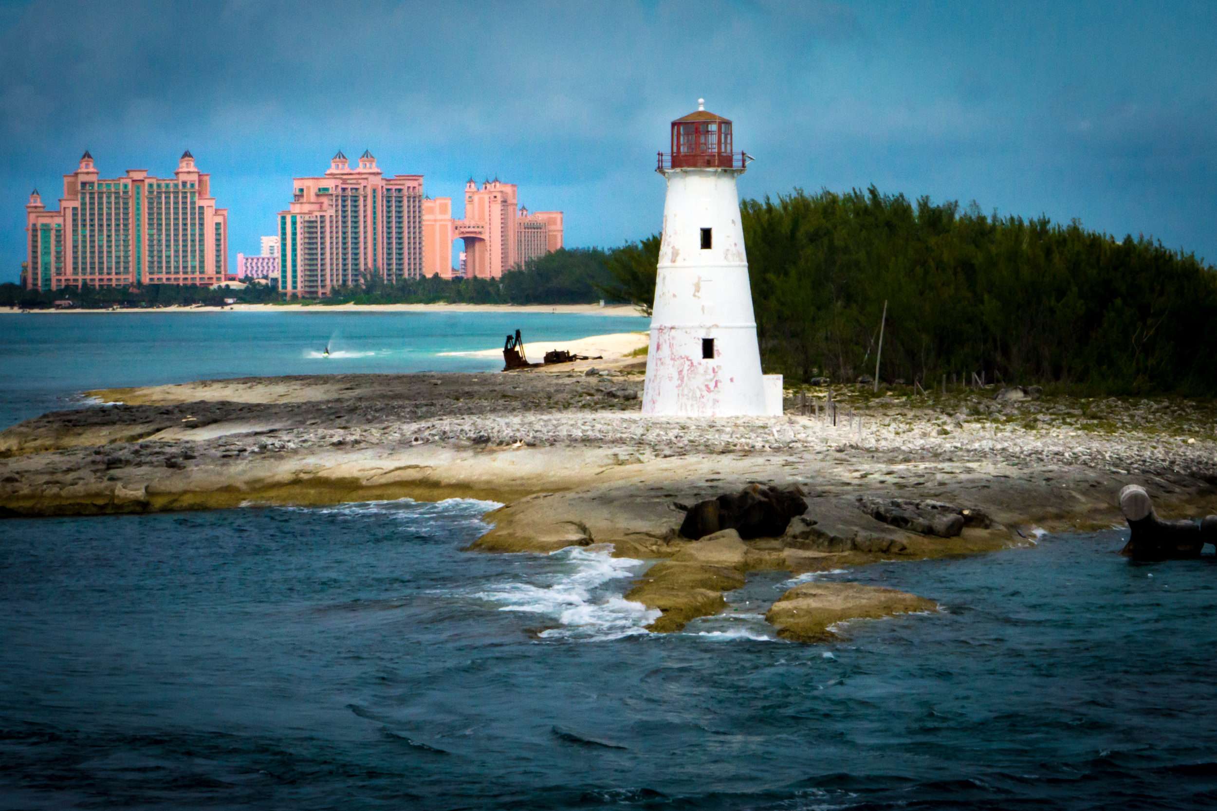 We've almost made it through Shark Week and paradise — or at least Paradise Island — is in sight. This little, run-down lighthouse perched at the far end of the island belies the glamor and splendor that lies beyond.