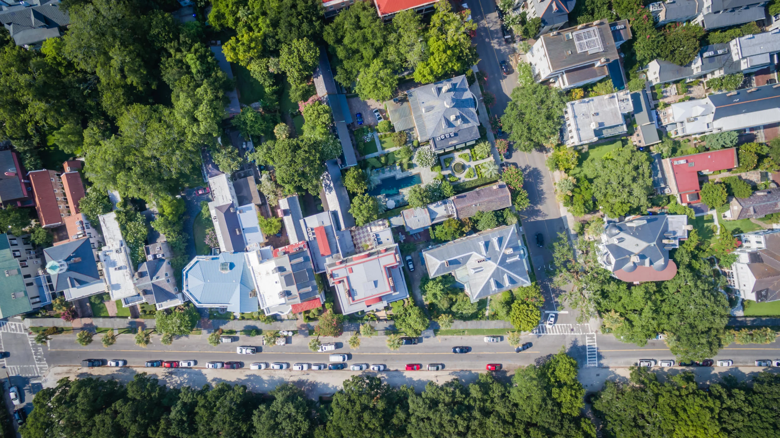 The homes on Charleston's famed Battery — also known as White Point Garden — are spectacular from the ground and a sight many are very familiar with. I sent the drone up for a different perspective on the grand homes. I'm really drawn to the unique rooflines, tile patterns and gardens throughout Charleston's most coveted neighborhood. I'd give just about anything to spend an afternoon lounging by that pool in the middle of the frame. In fact, that back yard has me ready to tear up our entire yard and build a replica in its honor.