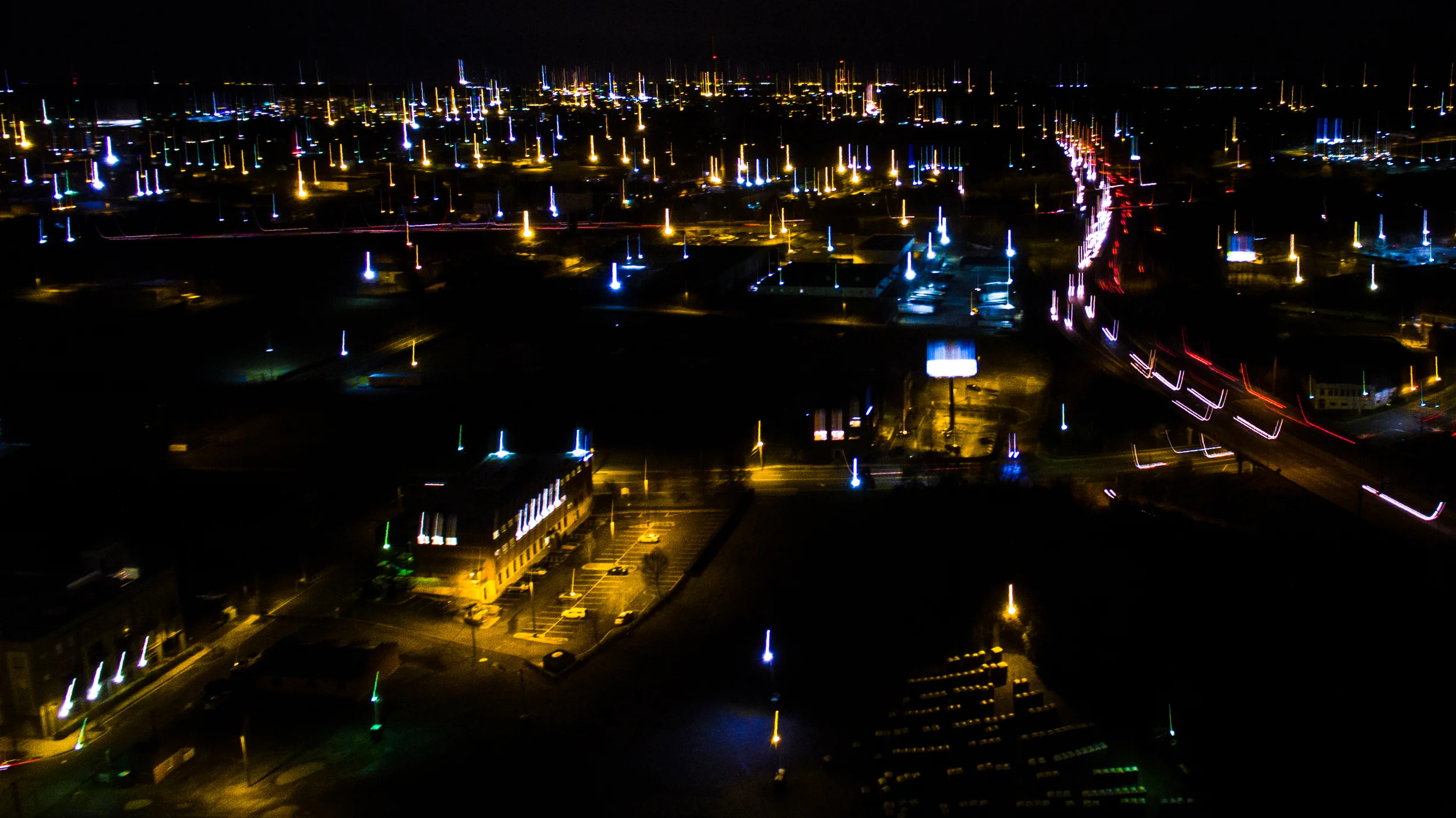 This is what happens when you're shooting long-exposure night shots from your drone and hit the shutter on the way home. As I was editing this photo, I could hear the late, great Bob Ross in my head: