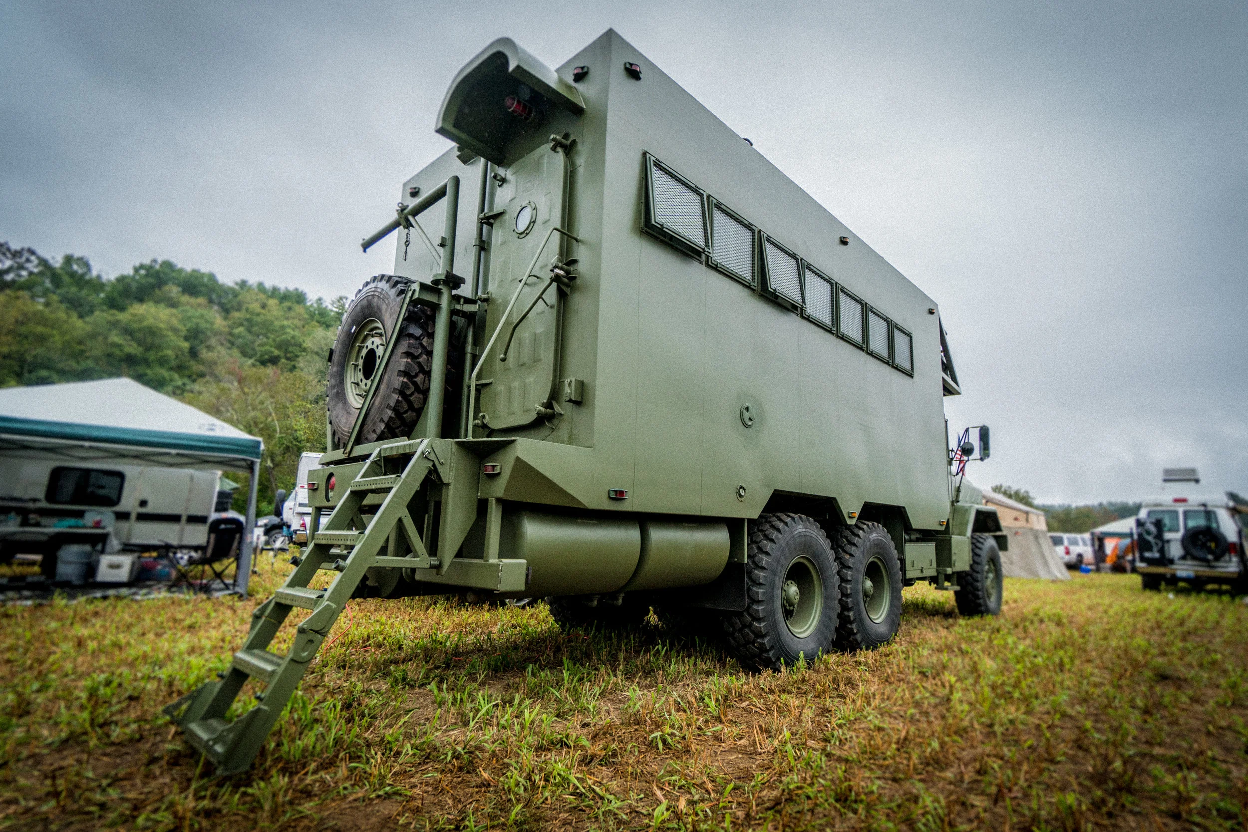 This camper retrofit from a United States Navy M-35 6x6 was one of the beasts of Overland Expo. Rather than go for clever cubbies and sleeping bays like you see on most overlanding vehicles, this one was simply a studio apartment on wheels. Everything was full-size from the 10-foot+ ceilings to the giant porcelain toilet in the bathroom. The guy who commissioned the build was just trying to make an extremely comfortable and capable home on wheels for a couple of people. And he knocked it out of the park! It even had a rooftop terrace for enjoying the views from 20-feet up in the air.