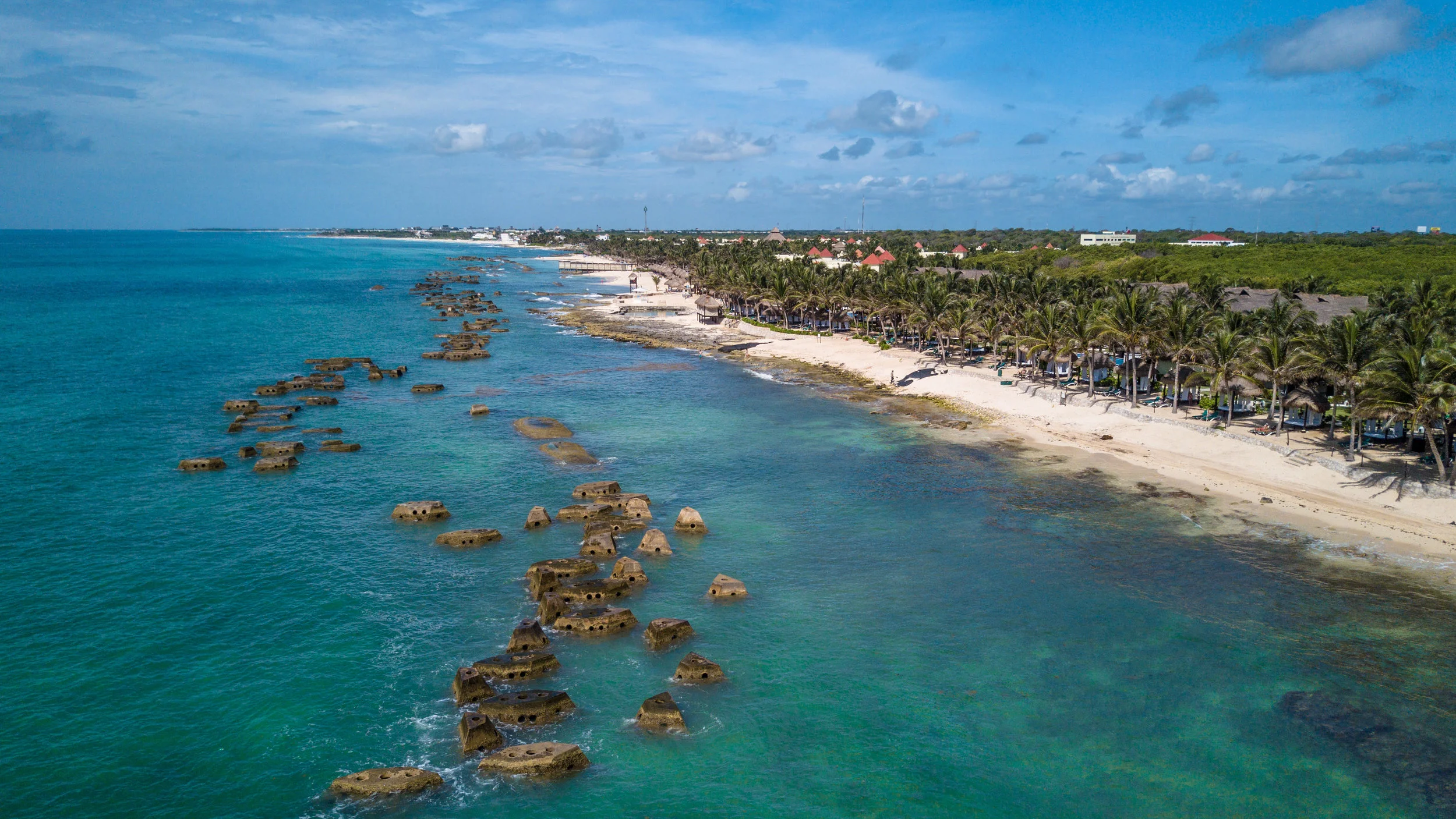 It's hard to beat the turquoise waters of Mexico's Riviera Maya. The colors continuously change throughout the day and night as the clouds filter sunlight on to the reefs and sand below the water. It's beautiful from the beach but when you get an aerial view with a drone, it's absolutely spectacular.
