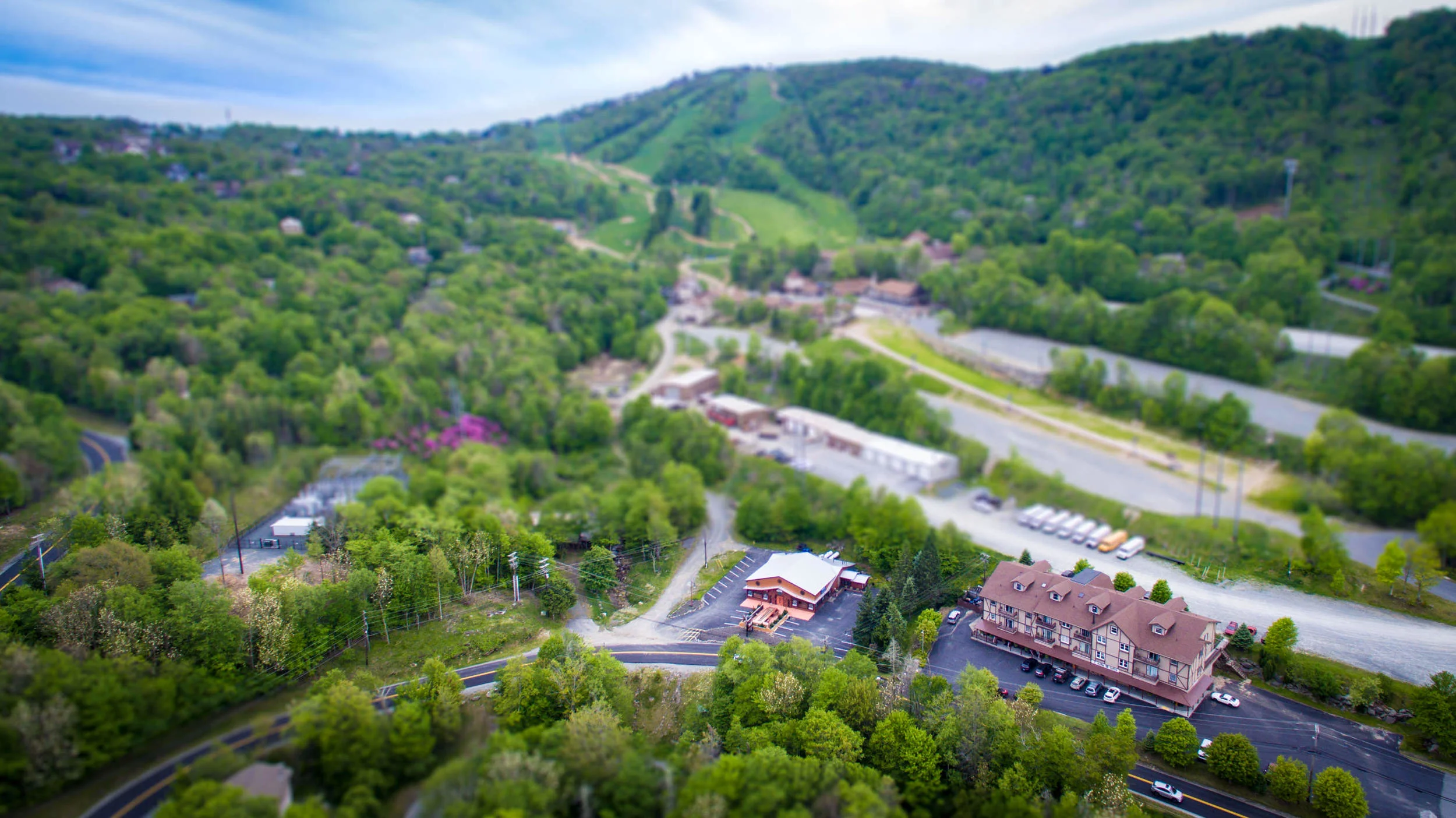 Beech Mountain is such a small community that I can fly the drone off the back deck at Slopeside and pretty much fly through the entire town. It sort of feels like having some prescient superpower! Pictured here is the excellent Famous Fast Eddie's (the larger building), the Mile High Tavern (smaller building) and the ski village and ski mountain (background).