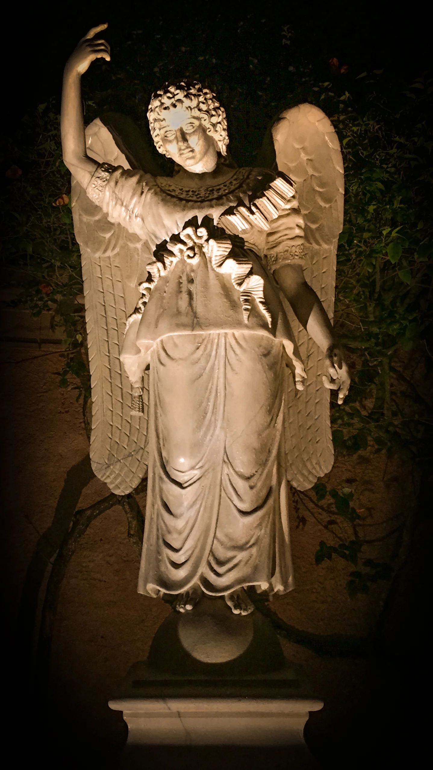 This angel resides in "Italy" at Disney's World Showcase at Epcot. It's just sort of tucked out of the way from the all of the craziness that is Disney and is a nice place to relax, enjoy a glass of wine and reflect on the awesome vision of Walt Disney.