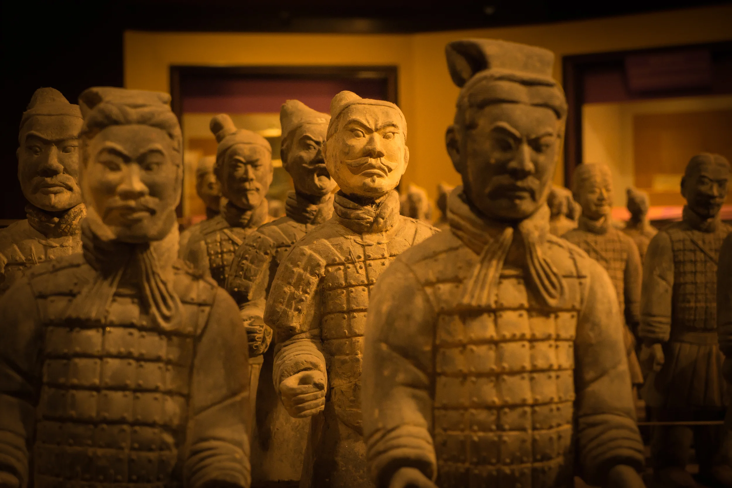 These statues are replicas of several of the more than 6,000 life-sized terracotta statues guard the burial temple of Qin Shi Huang. Qin Shi Huang was the founder of the Qin dynasty and the first emperor of Unified China (221-207 B.C.). Emperor Qin's most memorable project isn't the massive mausoleum in which he is buried, though. His largest — and most memorable — project was the earliest version of China's Great Wall.