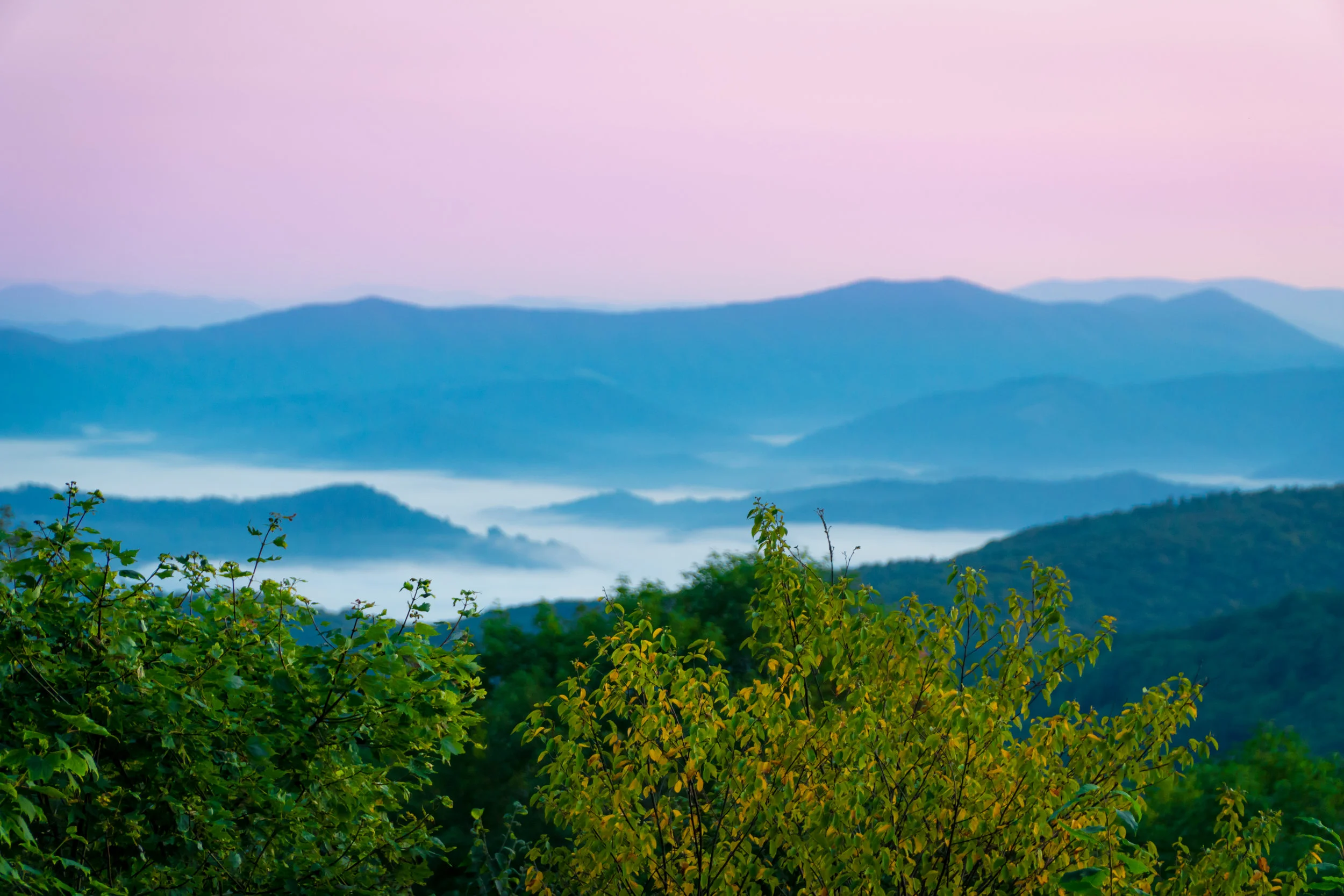 mountains, sunrise, trees, forest, clouds, beech mountain