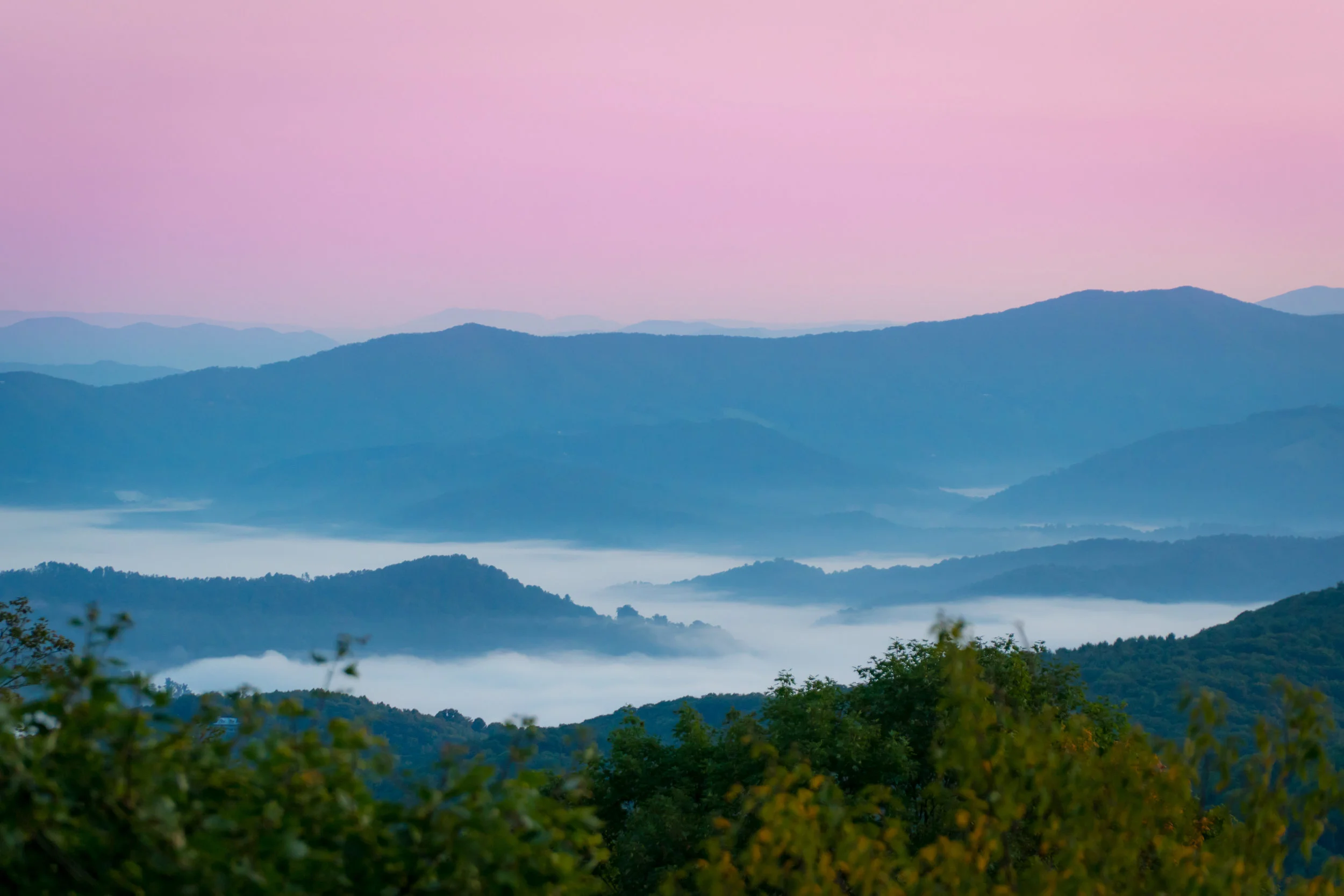 It would be hard to beat the sunrises from Beech Mountain. Every day brings another technicolor surprise. On this occasion, the sky turned pink to complement the smoke-colored Blue Ridge Mountains. At 5,506', Beech Mountain is the highest town east of the Rockies. The height often results in rivers of clouds flowing through the valleys on cool mornings.