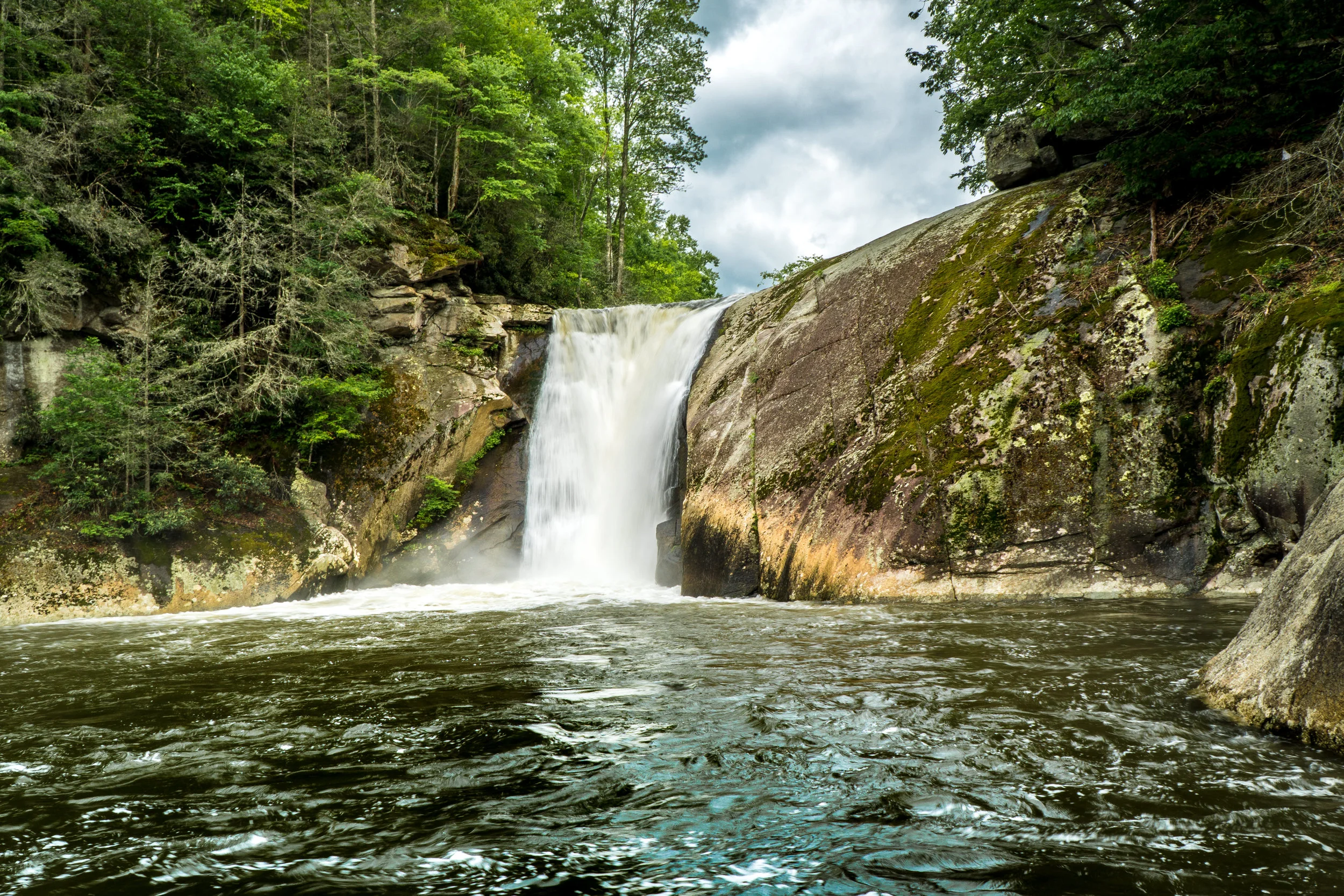 Elk River Falls are located in Western North Carolina, right along the border of Tennessee. The hike from the parking area is super short but there are a lot of smaller game trails heading off in all directions from the Falls. The sound of the falls make it easy to keep your bearings and find your way back to the river.
